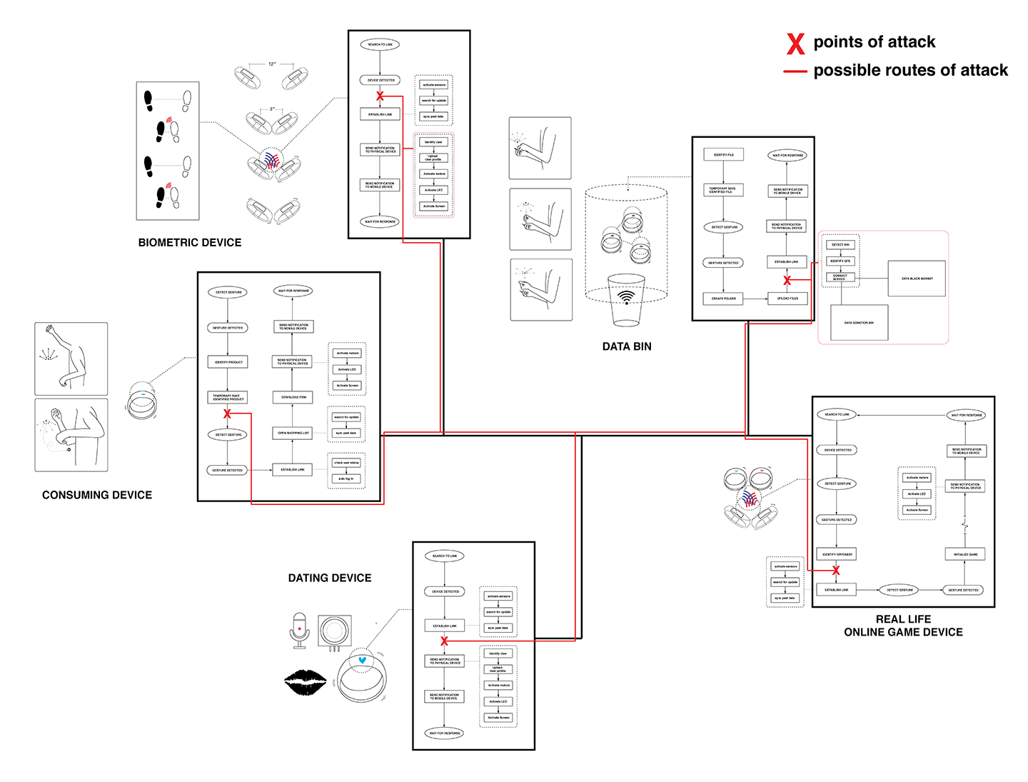This opens an interesting avenue of investigation. The oversimplification of our devices and interfaces leaves ambiguities to be exploited, while flaws in the infrastructure that the technology is founded upon allow for misuse. Things like quantification become risky, and the risk is amplified when the devices that store our most personal data are carried on our extremities.